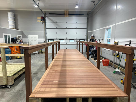 Welcome to our shop where we specialize in constructing all of our piers allowing us to efficiently load them onto our barge for installation with a crane after the pilings are set. Our engineered beams enable spans of up to 50 feet without the need for middle pilings or supports, promoting eco-friendliness by allowing natural sea flow and reducing debris while providing a cost-effective solution.